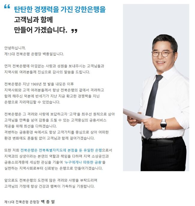 백종일 전북은행장 인사말