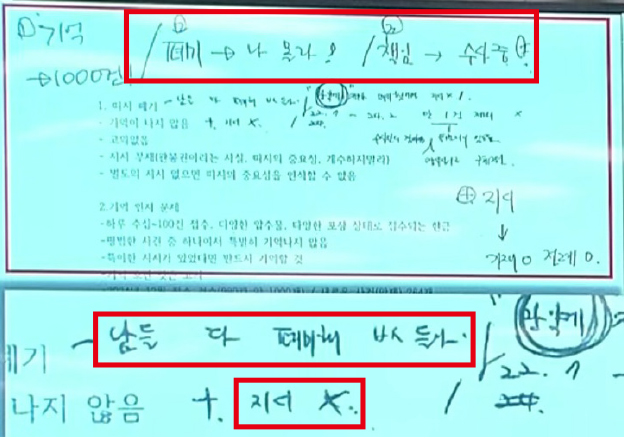 "남들 다 폐기해 ㅂㅅ들아"5일 이른바 '건진법사 관봉권 띠지'를 누가 훼손했는지를 두고 열린 청문회에서 증인으로 나선 김정민 수사관이 답변을 위해 준비한 자료에 수기로 쓴 글이다.김 수사관은 동료 남경민 수사관과 함께 '말맞추기'를 위해 작성했는데 그 위에 비속어로 추정되는 단어들을 쓴 것이다.여기에는 "...