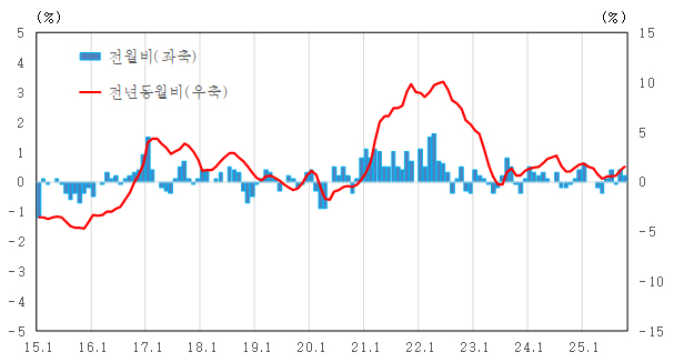 [한국은행 생산자물가지수] 2025년 10월 배추 지고 반도체 뜨며 3개월 만에 반등