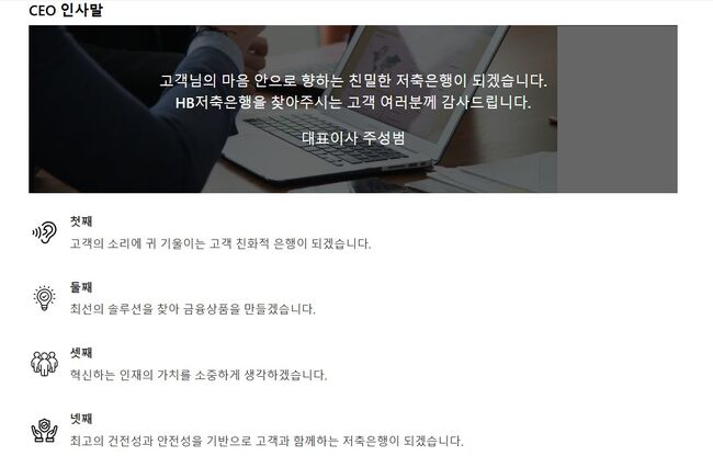 주성범 HB저축은행 CEO 인사말