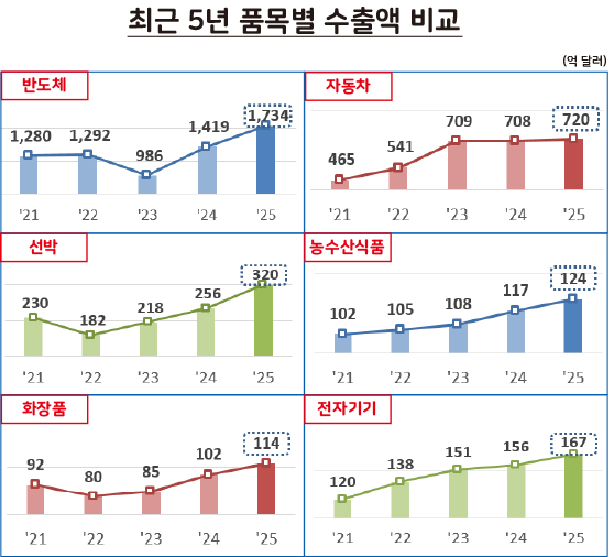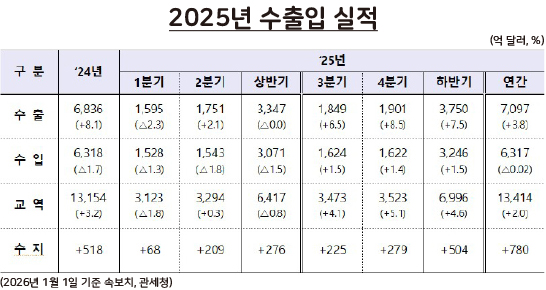 [수출입동향] 2025년 12월, 수출 7000억 달러 시대 개막…반도체 1734억 달러로 역대 최대