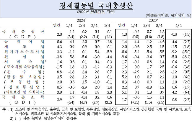 [한국은행 국내총생산] 2025년 GDP 1% 턱걸이 상승…4분기는 0.3% 감소