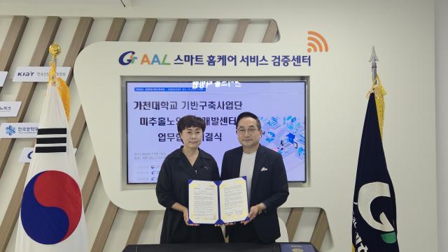 가천대 기반구축사업단과 미추홀노인인력개발센터가 고령친화 스마트홈 헬스케어 서비스 확산 및 노인 일자리 창출을 위한 업무협약을 했다.