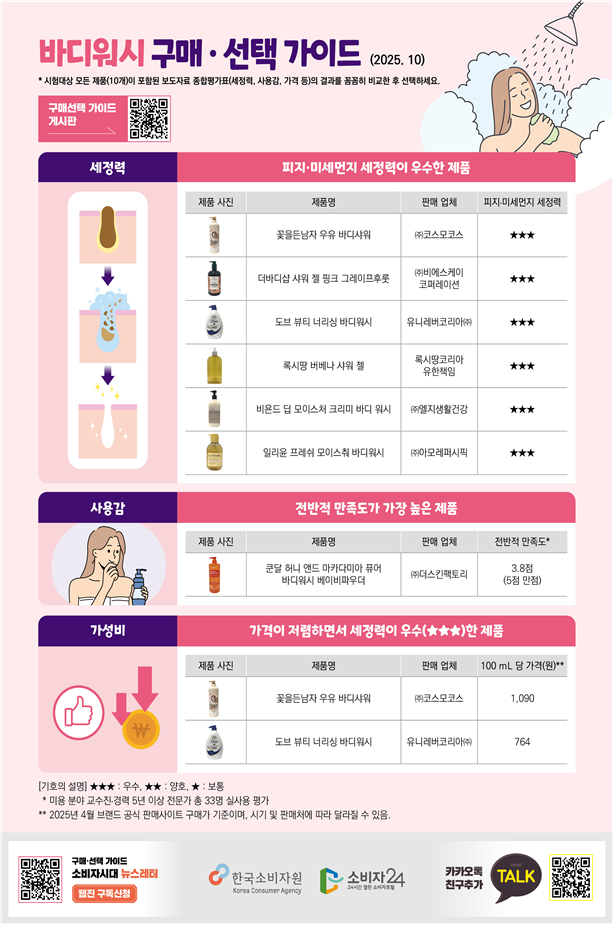 한국소비자원의 바디워시 비교···쿤달 '만족도 최고', 뉴트로지나 '알레르기 성분 누락'
