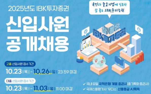 IBK투자증권이 'AI 역량검사'와 '1박 2일 합숙 면접'이라는 카드를 꺼내 들며 2025년 신입사원 공개채용에 나선다.
