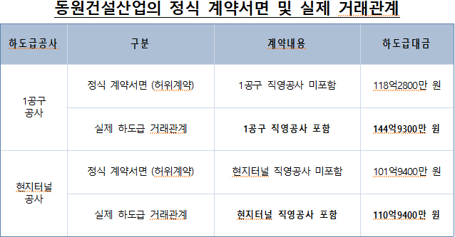 동원건설산업의 정식 계약서면 및 실제 거래관계