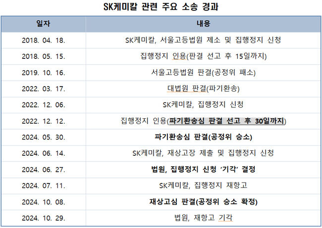 SK케미칼은 2024년 6월 27일 법원이 집행정지 신청을 기각함에 따라 2024년 7월 28일까지 명령을 이행할 의무가 발생했다.