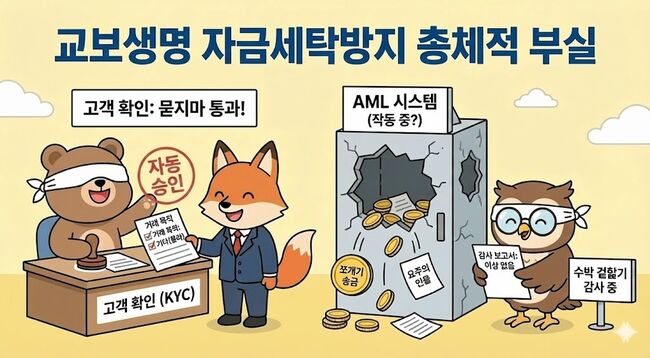 교보생명보험의 자금세탁방지(AML) 체계가 총체적 부실을 드러냈다. 고객 확인부터 의심 거래 보고, 내부 통제에 이르기까지 전방위적인 허점이 발견됐다.