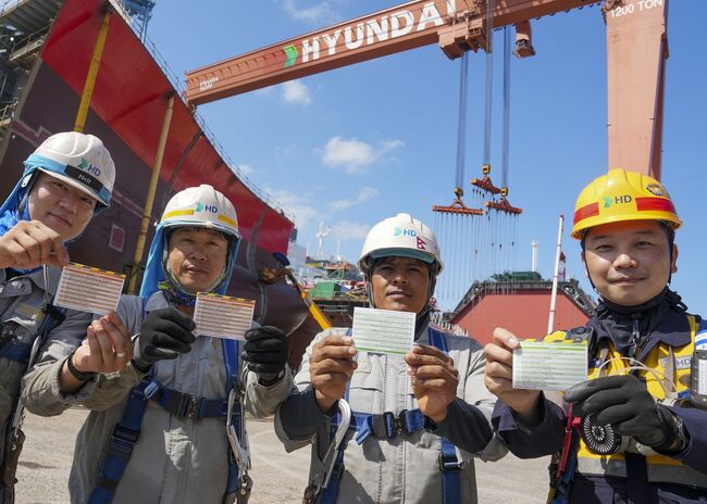 HD현대삼호는 회사 임직원 및 사내협력사, 도급사 등 전 직원에게 '안전수칙 포켓북'을 지급했다. 포켓북에는 9개 언어별 안전수칙·점검항목 등이 수록됐다.(2025년 8월)