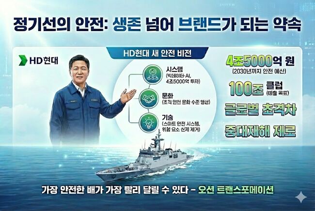 HD현대가 '100조 클럽' 진입과 '글로벌 초격차'라는 거대한 목표를 향해 질주하는 가운데, 정 회장이 그 질주의 가장 단단한 바퀴로 안전을 꼽았다.