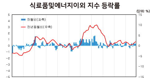 11월 식료품및에너지이외지수는 전월대비 0.3% 상승, 전년동월대비 1.9% 상승
