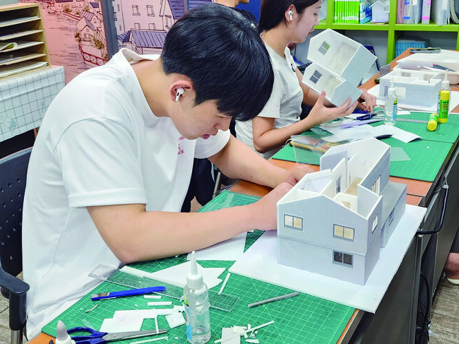 동성직업전문학교에서 건축물 모형을 만들고 있는 학생들