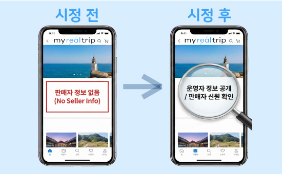 제재가 내려지자 마이리얼트립은 시스템을 고쳤다. 웹사이트는 입점 파트너의 필수 정보를 입력하도록 개선됐다. 앱에는 판매자 신원 정보를 제공하는 기능이 신설됐다. 2025년 5월에 이르러서야 앱 초기화면에 운영자 정보가 표시되고 이용약관이 연결됐다.