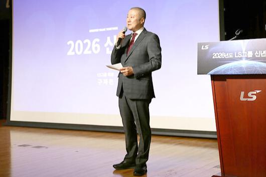 2일 구자은 LS 회장이 안양 LS타워에서 신년사를 하고 있다