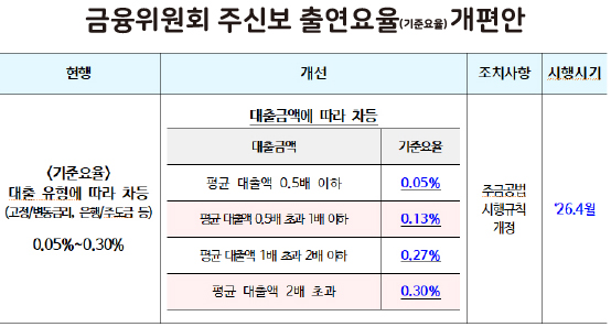 개편안에 따르면, 평균 대출액의 2배를 초과하는 고액 대출에 대해서는 0.3%의 높은 출연요율이 적용된다.