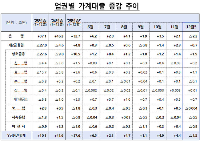 12월의 반전, 전 금융권 대출 감소로 전환