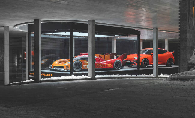 다보스 아메론호텔에 전시된 'GMR-001 하이퍼카'와 'GV60 마그마'