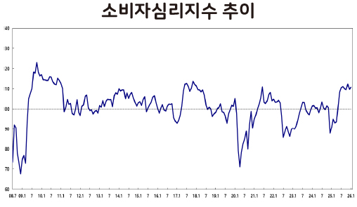 소비 심리가 살아나는 것은 반가운 신호지만 집값 급등 우려와 고용 불안, 여전한 물가 부담은 우리 경제가 넘어야 할 산이다. 정부는 지표상의 온기가 서민들의 실제 삶으로 퍼질 수 있도록 세밀한 정책 조율에 나서야 할 것이다.