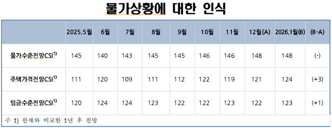 이번 조사에서 가장 눈에 띄는 대목은 부동산 심리의 부활이다. '주택가격전망CSI'는 124를 기록하며 전월 대비 3포인트나 껑충 뛰었다.