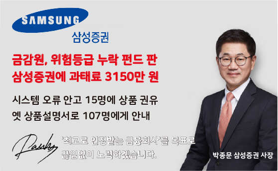 금융감독원이 11일 자산운용사가 상향한 펀드의 위험등급을 시스템에 제때 반영하지 않고 과거 설명서로 고객에게 부적합한 상품을 판매한 삼성증권(사장 박종문)에 3150만 원의 과태료와 임직원 징계를 내렸다.사건의 발단은 펀드 위험등급 관리 소홀에서 비롯됐다. 삼성증권은 2021년 9월 28일부터 2022년 5월 20일까지 비대면 판매채널에서 1..