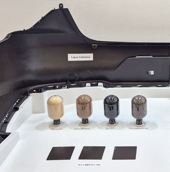 소나무 등 국내산 목재를 분쇄하고 추출해 만든 이 바이오 소재는 범퍼 커버와 같은 플라스틱 부품을 대체하게 된다.
