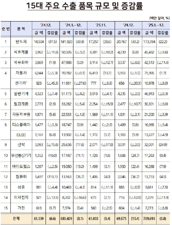 [수출입동향] 2025년 12월, 수출 7000억 달러 시대 개막…반도체 1734억 달러로 역대 최대