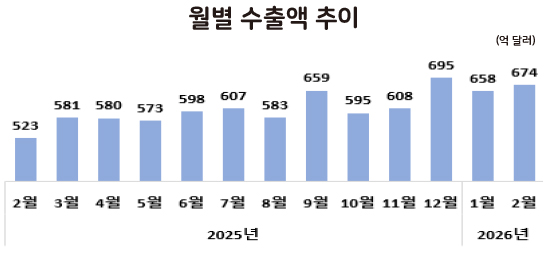 [수출입동향] 2026년 2월 역대급 수출 터졌다…반도체 타고 일평균 첫 30억 달러 수출