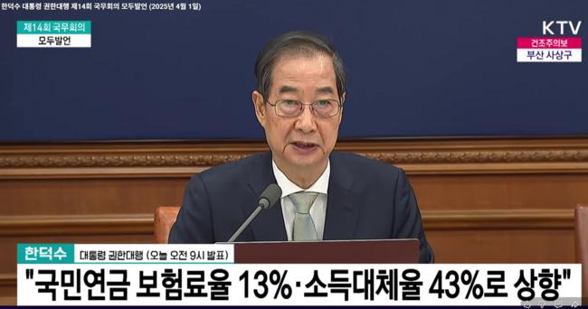 1일 열린 국무회의에서 한덕수 대통령 권한대행 국무총리(KTV 캡처)