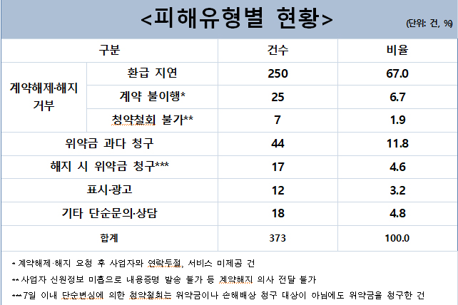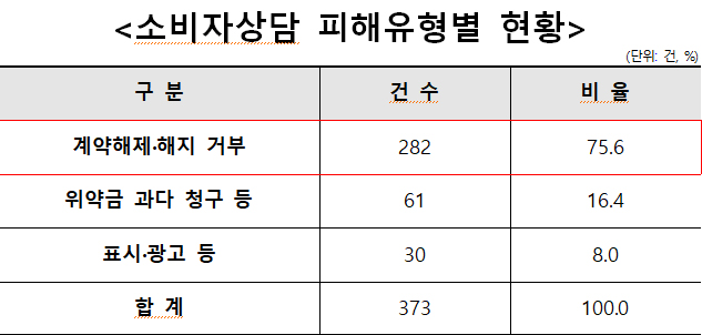 • - 최근 3년간 373건 상담, 75.6%가 '계약해지 거부'