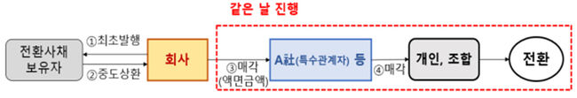 먼저 회사는 발행한 사모 전환사채를 콜옵션 행사 등으로 다시 사들였다. 그리고 이 CB를 특수관계자인 A사에 공정가치보다 훨씬 싼 '액면금액'으로 팔아넘겼다.