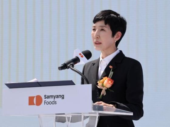 김정수 삼양식품 부회장이 6월 11일 밀양에서 열린 제2공장 준공식에서 기념사를 하고 있다.