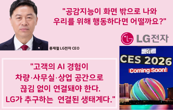 류재철 LG전자 CEO가 'CES2026'를 앞두고 공감지능 기반의 다양한 솔루션으로 고객의 일상 공간을 연결하는 ‘AI 경험’을 제시하며 '행동하는 AI' 시대를 선언했다.