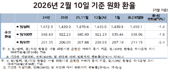 [한국은행 국제금융·외환시장 동향] 2026년 2월 10일 기준 원화 환율