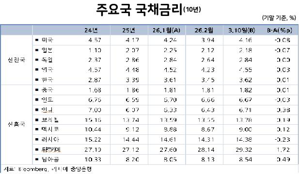 1. [한국은행 국제금융·외환시장 동향] 2026년 1월 이후 '달러 약세에도 원화 뒷걸음' 2026년 새해. 글로벌 금융시장은 미국 연방준비제도(Fed)의 통화정책 전환 기대감과 기업 실적 호조에 힘입어 훈풍이 불었다. 미국 국채 금리는 하락했고 주요국 증시는 상승세를 탔으며 '킹달러'의 위세도 한풀 꺾여 달러화는 약세로 돌아섰다. 하지만 대한민국 외환시장의 풍경은 달랐다. 달러가 약세를 보였음에도 원화 가치는 오히...