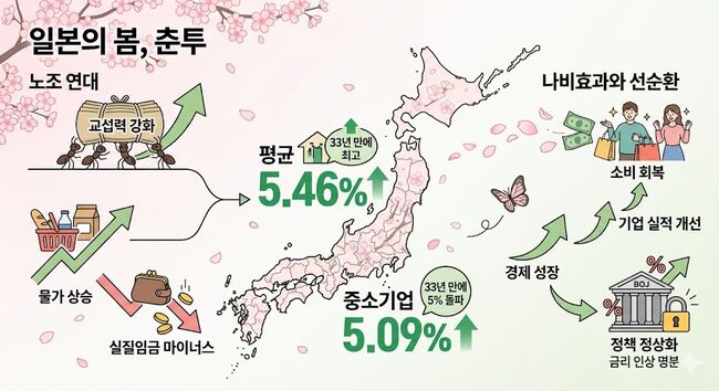 투자자라면 이제 벚꽃 피는 일본의 봄만 기다릴 것이 아니라, '춘투'의 결과표를 유심히 지켜봐야 한다. 올해 춘투가 이끌어낸 임금 인상이 끈질긴 실질임금 마이너스의 고리를 끊어내고 진짜 '소비 호황'을 불러올 수 있을지 확인해야 할 시점이다.