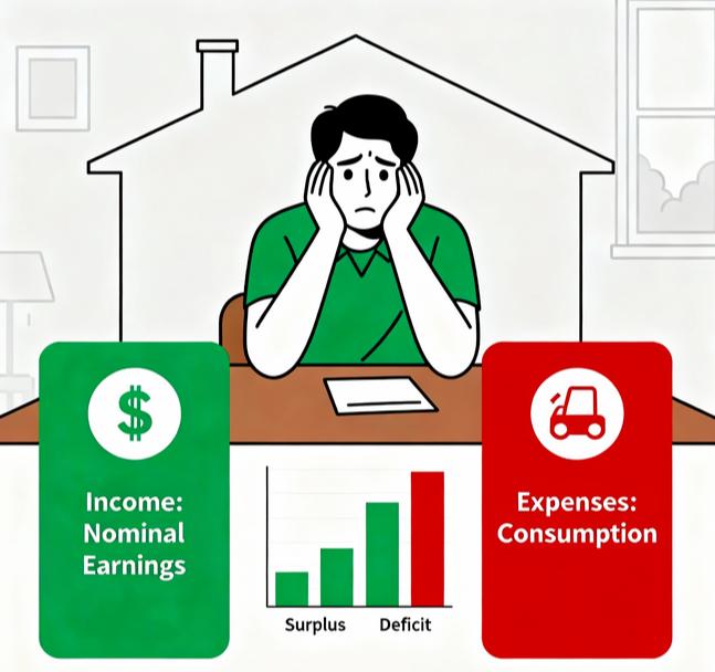 그럼 가계수지(household's total income and expenditure)란 무엇인가. 가정에서 일정 기간 수입(명목소득)과 지출을 비교해 남았는지 모자랐는지 표시한 것으로 흑자인지 적자인지가 핵심이다.