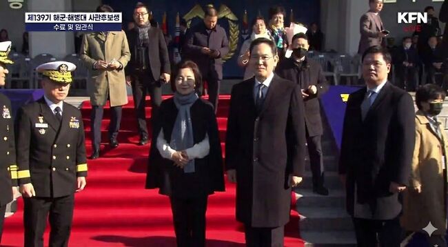 11월 28일 이지호 군의 해군 사관후보생 임관식에 참석한 홍라희 관장과 이재용 회장