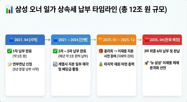 삼성 오너 일가 상속세 납부 타임라인(12조 원 규모)
