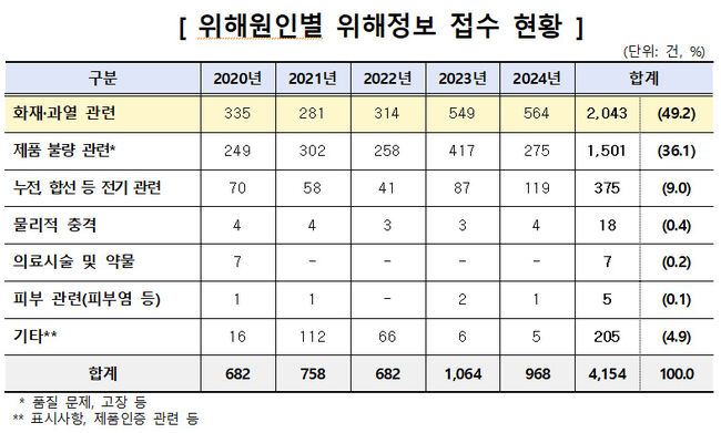 • - 치명적 피해 절반이 화재·과열…10명 중 8명 화상