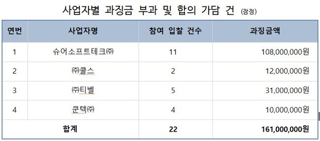 • - 슈어소프트·쿨스·티벨·쿤텍까지 과징금 1억6100만 원