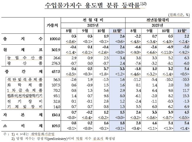 2025년 11월 수입물가지수 등락률