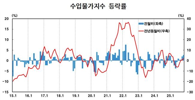 2025년 11월 수입물가지수 등락률수출입 교환비율 청신호···교역조건 5.8% 개선